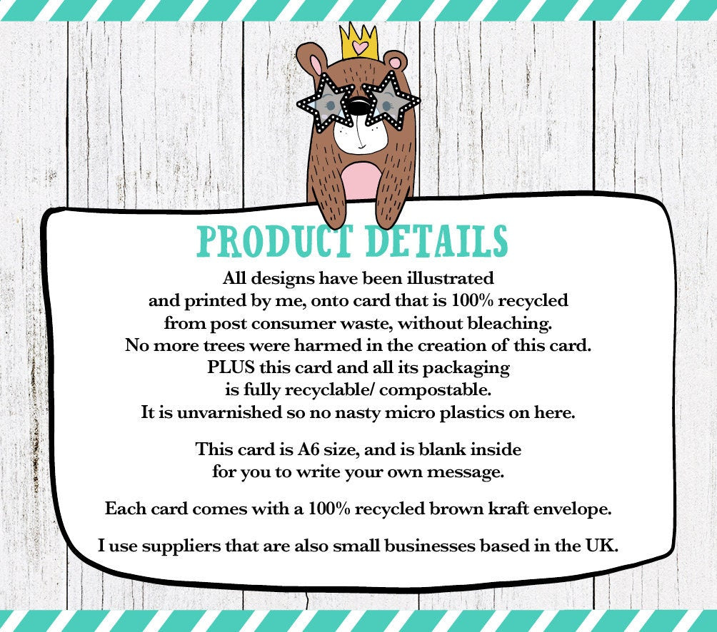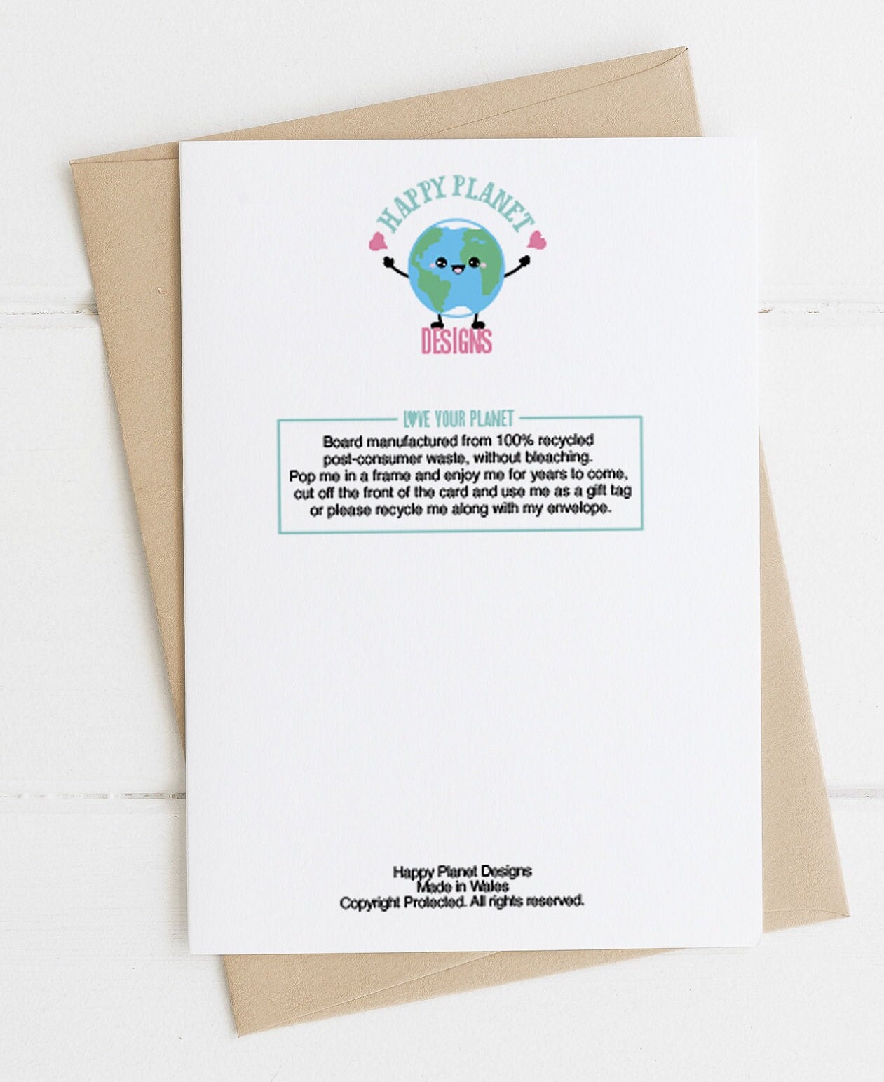 Made from 100% recycled unbleached card, as such it is just a fraction off white with a slight fleck - which adds to its charm- and brown kraft envelope (also recycled) for a happier planet.