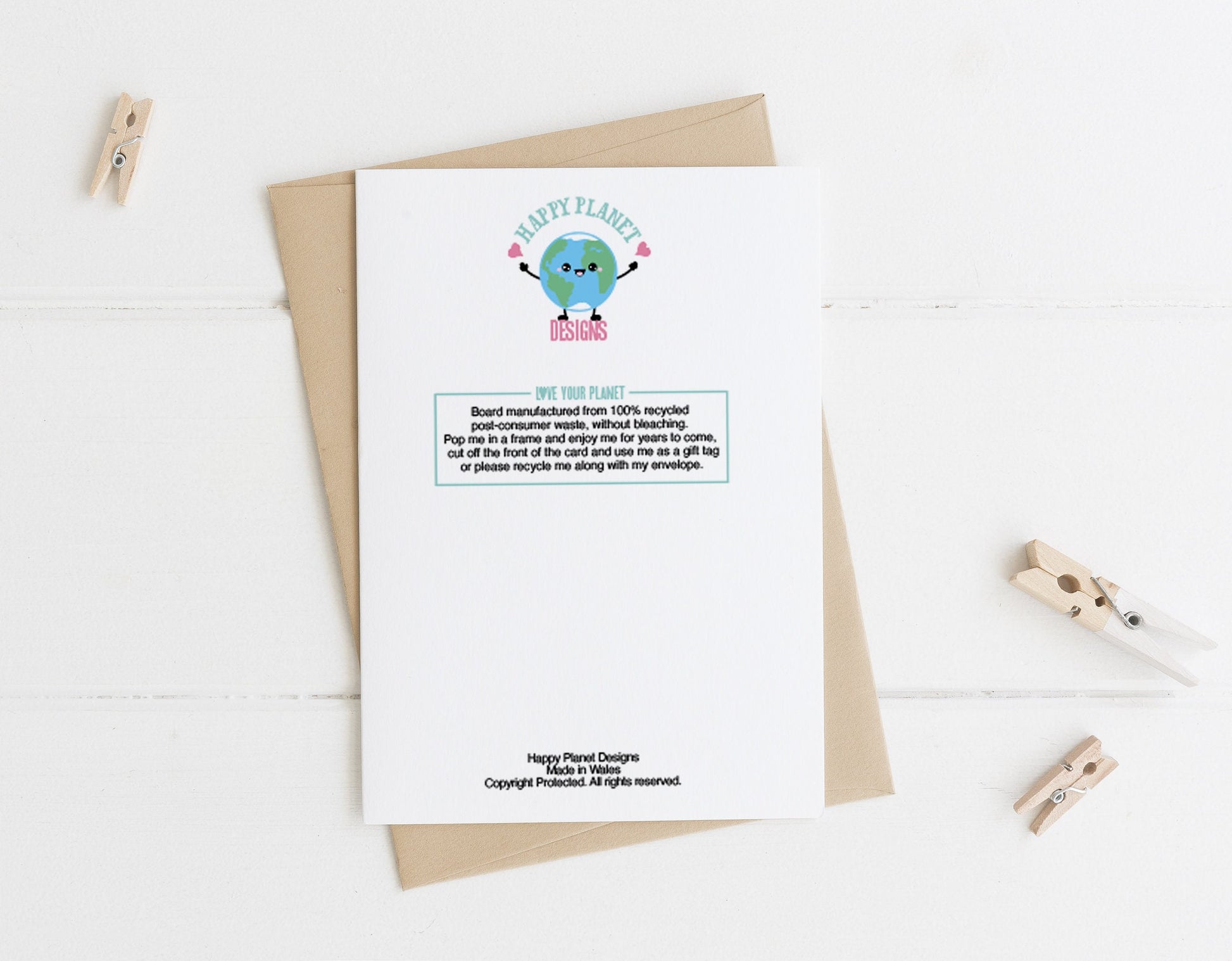 Made from 100% recycled unbleached card, as such it is just a fraction off white with a slight fleck - which adds to its charm- and brown kraft envelope (also recycled) for a happier planet.